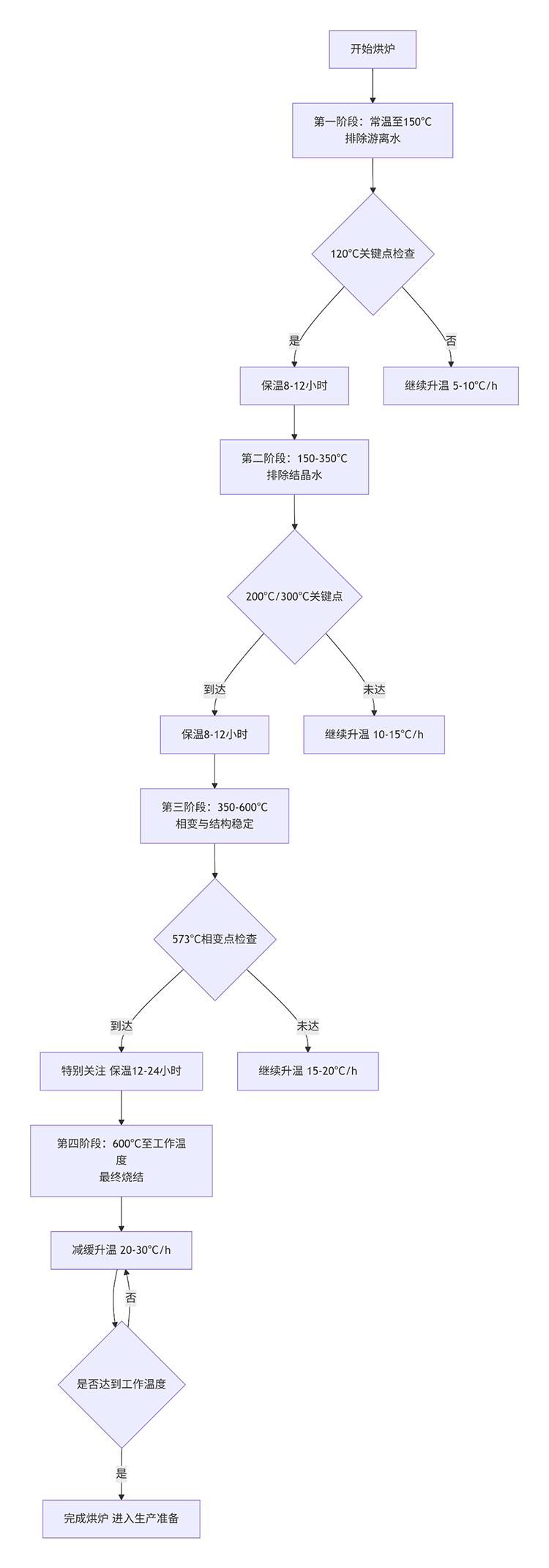 關(guān)鍵節(jié)點(diǎn):120℃左右是大量游離水蒸發(fā)的集中點(diǎn),需適當(dāng)保溫